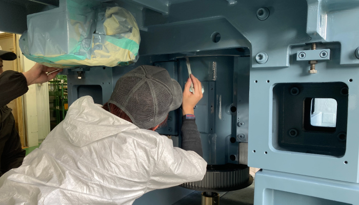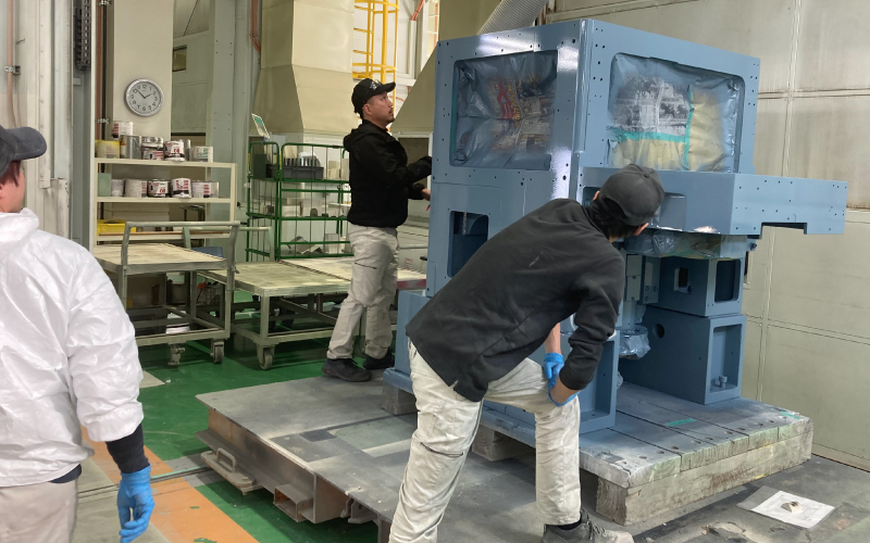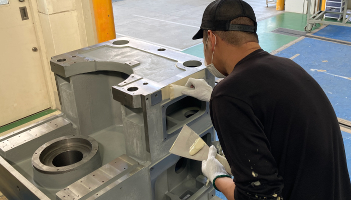 目に見える部分だけでなく、裏側や入り組んだ部分まで丁寧に塗装することにこだわっています。完成する機械の性能に変化がなくても、細部まで美しく仕上げることで、製品全体の品質と信頼性を高める独自の強みです。