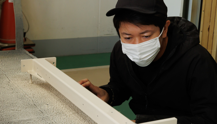 最後に完成した塗装面を丁寧に検品し、色ムラやキズ、仕上がりの精度を確認。品質基準をクリアした製品だけをお客様にお届けします。